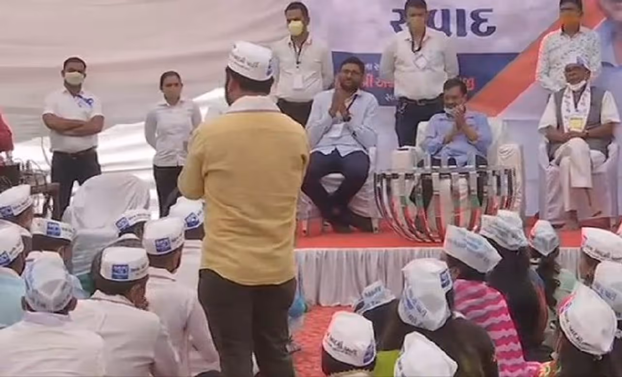 (सूरत के सर्किट हाउस में आप कार्यकर्ताओं से चर्चा करते हुए सीएम केजरीवाल )
