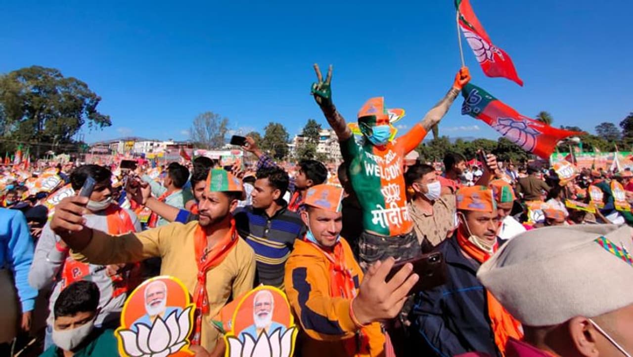 - रैली में कोई मास्क पहनकर तो हाथ में झंडा लेकर रैली में पहुंचा है। लोग हाथों में कमल के फूल का बैनर और स्टीकर लेकर भी रैली में पहुंचे हैं। रैली में काले रंग के मास्क पहनकर आए लोगों के मास्क उतरवा दिए गए।