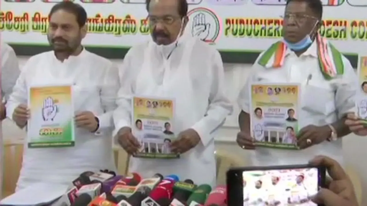 पांच राज्यों के साथ केंद्र शासित प्रदेश पुडुचेरी में होने जा रहे विधानसभा में अब चुनावी शोरगुल दिखाई-सुनाई पड़ने लगा है। कांग्रेस ने यहां के लिए अपना चुनावी घोषणा पत्र जारी कर दिया है। घोषणा पत्र राज्य के पूर्व मुख्यमंत्री वी नारायणसामी ने जारी किया। इससे पहले 26 मार्च को भाजपा ने अपना मेनिफेस्टो जारी किया था।