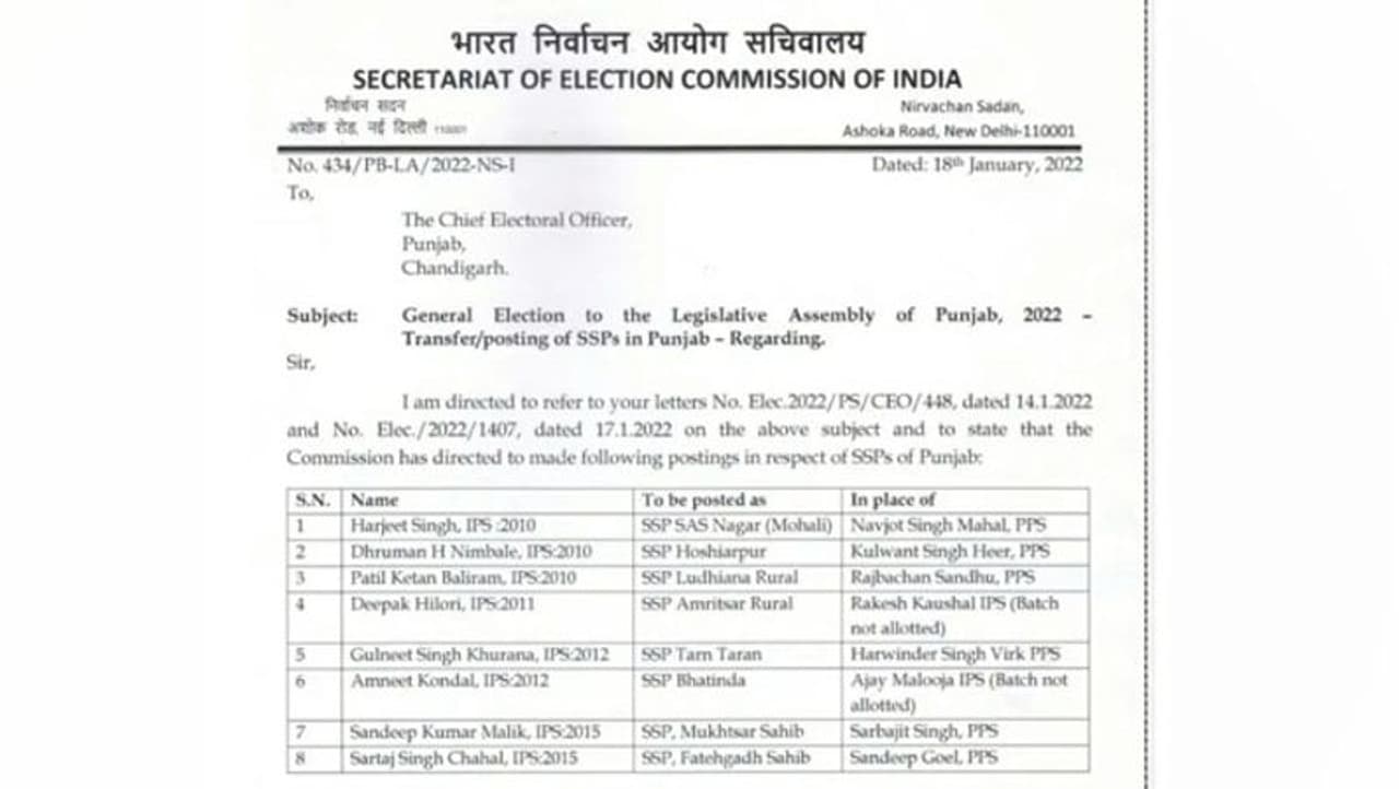 पंजाब में चुनाव से पहले चुनाव आयोग ने एक्शन लिया है। ईसीआई ने पंजाब में बठिंडा समेत 8 एसएसपी के तबादला कर दिए हैं।