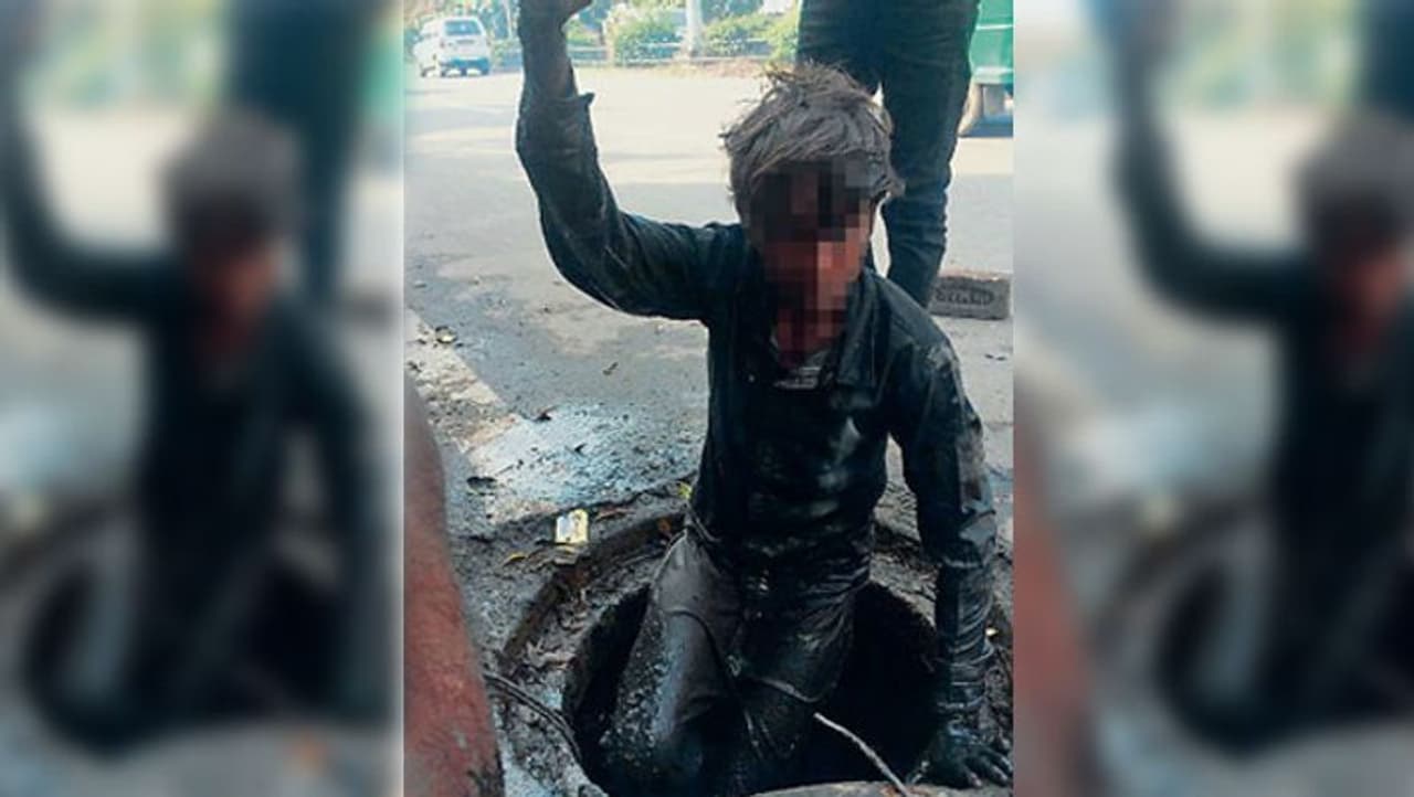 यह तस्वीर शर्मनाक है। अपना काम निकालने एक ठेकेदार ने दो बच्चों को गैरकानूनी तौर पर 5 फीट गहरे गटर में उतार दिया। बच्चों ने न गमबूट पहने थे और न हाथों में ग्लब्स। किसी हादसे की स्थिति में ऑक्सीजन का भी इंतजाम नहीं था।