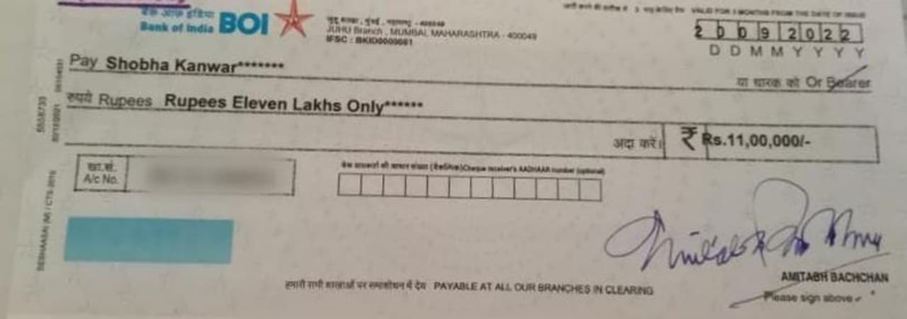 राजस्थान की महिला को अमिताभ बच्चन ने भेजा 11 लाख रुपए का चेक, वह भी खुद की खर्च से। कौन बनेगा करोड़पति की हॉट सीट पर बेटियों की शिक्षा के लिए प्रयासरत सामाजिक महिला कार्यकर्रता के मुरीद हुए। कहा- आपके आगे नमस्तक हूं।