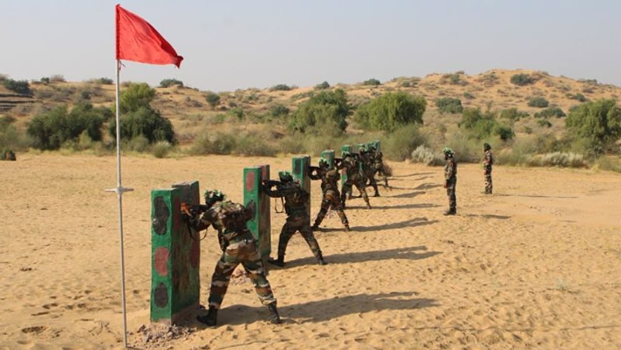 बीकानेर. ये तस्वीरें बीकानेर के महाजन फील्ड फायरिंग रेंज की हैं। भारत के वीर जवान देश को सुरक्षित रखने यूं ही खुद को लगातार फौलाद बनाते रहते हैं। जब हम दिवाली की खुशियों में डूबे होंगे, तब भी ये जवान ड्यूटी पर डटे रहेंगे। यहां 31 अक्टूबर से 13 नवंबर तक भारत-फ्रांस सेना का संयुक्त अभ्यास ‘शक्ति 2019’ शुरू होगा। अभ्यास में शामिल होने दिवाली से ठीक एक दिन पहले यानी छोटी दिवाली पर फ्रांसीसी सेना के जवान और अधिकारी यहां पहुंच गए हैं। सेना के प्रवक्ता कर्नल संबित घोष ने बताया कि यह अभ्यास पूरी तरह से आंतकवाद विरोधी अभियानों पर केंद्रित होगा।