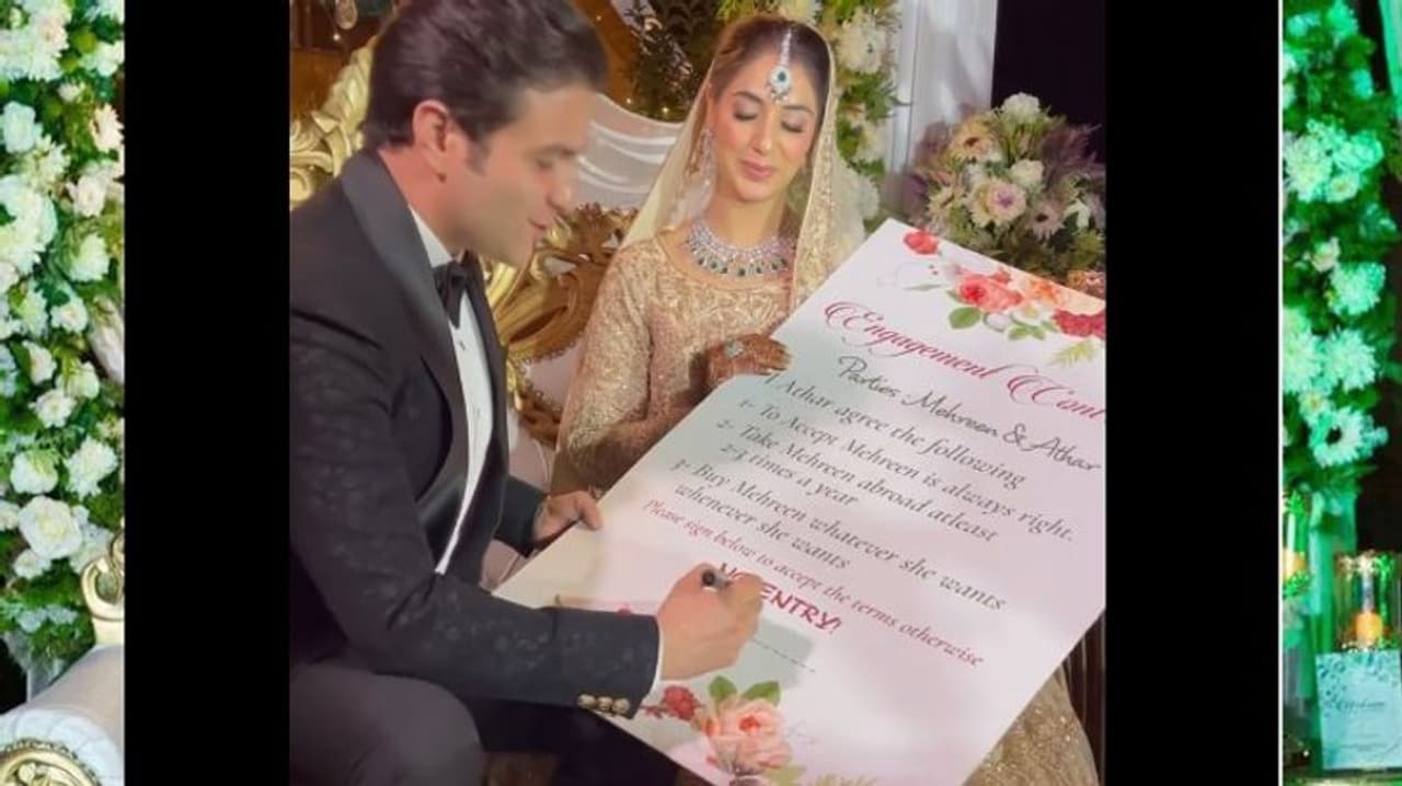 आईएएस अफसर के सामने उनकी सालियों ने एक डिजीटल बोर्ड पर कुछ शर्तें लिखीं, जिसमें कहा गया है कि वह साल में 2 से 3 बार हमारी बहन को विदेश घुमाने के लिए लेकर जाएंगे। साथ ही महरीन जब कभी जहां से भी कुछ खरीददारी का कहे उसके लिए आप मना नहीं करेंगे। अगर इन शर्तों को पूरा करते हैं तो आप शादी कर सकते हैं। अतहर ने खुशी-खुशी अपनी सालियों की सारी शर्तें मान लीं और कॉन्ट्रैक्ट भी साइन कर दिया।