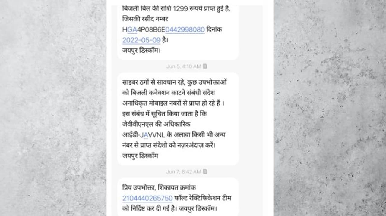 जयपुर. आप राजस्थान से हैं, खासतौर पर जयपुर से तो आपको ये मैसेज आ सकते हैं। आपको लगेगा बिजली वालों ने ये मैसेज भेजे हैं और फिर आप आनन फानन में मैसेज को फॉलो करने लग जाएंगे और आपका खाता साफ हो जाएगा। जयपुर में बीती रात फिर से एक बुजुर्ग अपने करीब दो लाख रुपए गंवा चुके हैं। जयपुर में एक ही मैसेज से खाते साफ करने के सबसे ज्यादा केस सामने आए हैं। सिर्फ दो ही महीनों में पंद्रह से ज्यादा लोगों के खातों से करीब पैंतीस लाख निकाले जा चुके हैं।