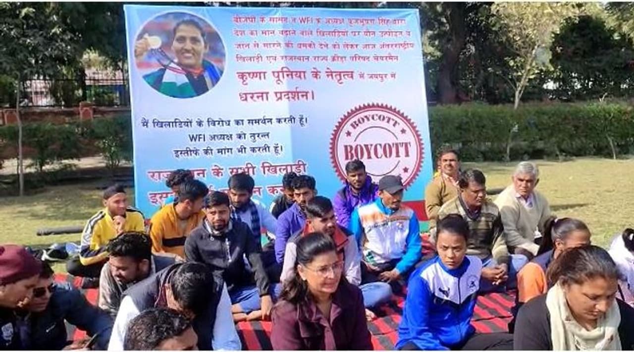 दिल्ली के जंतर-मंतर में पहलवान धरने पर बैठे है। कारण है कुश्ती महासंघ के प्रेसिडेंट के ऊपर योन शोषण का आरोप लगा हुआ है। अब इसकी चिंगारी राजस्थान तक पहुंच चुकी है और ओलंपिक खिलाड़ी कृष्णा पूनिया के साथ कुछ अन्य लोग धरने पर बैठ गए है।