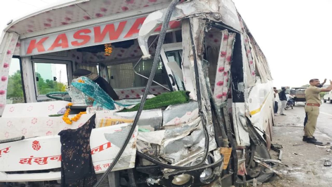 यू टर्न ले रहा था ट्रक, सवारियों से भरी बस जा घुसी