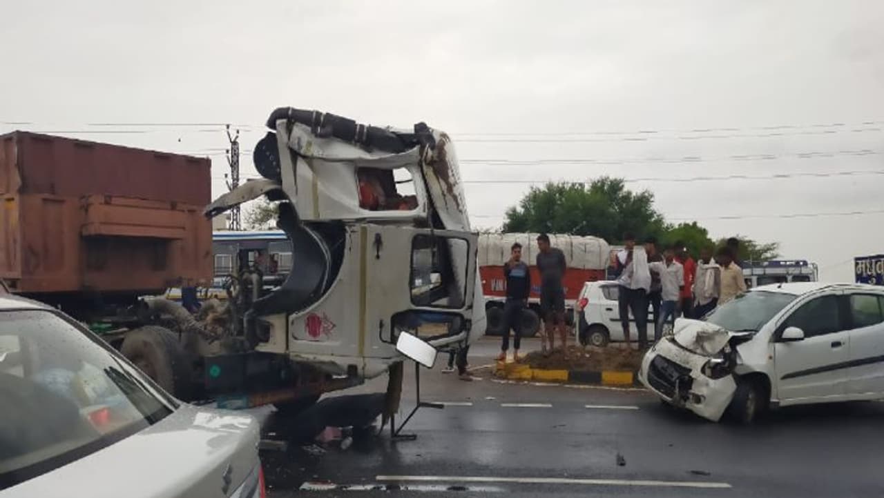 हाइवे पर बारिश के पानी के बीच ऑयल गिरा हुआ था, यू टर्न ले रहे ट्रक में पहले बस ने जोरदार टक्कर मारी, उसके बाद पीछे से आ रही कार बस में भराई। ब्रेक लगाने के बाद भी नहीं रुके वाहन, हादसों में पंद्रह लोग घायल, तीन किलोमीटर लंबा जाम लग गया