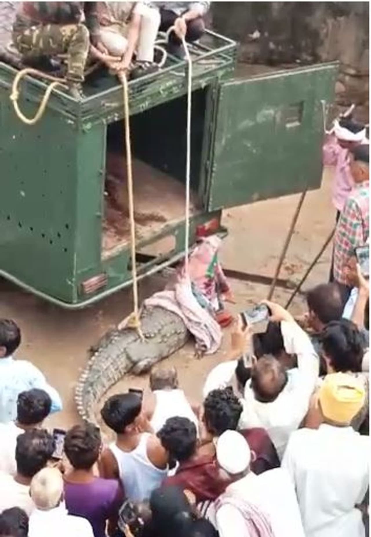 वही रणथंभौर दुर्ग के नजदीकी गांव शेरपुर में आज दोपहर टाइगर रिजर्व इलाके से एक मगरमच्छ आबादी वाले इलाके में घुस गया। मगरमच्छ को देख एकबारगी तो गांव के लोगों में हड़कंप मच गया। जिसके बाद कुछ लोगों ने इसकी सूचना प्रशासन को दी। करीब 20 से 25 मिनट में सिविल डिफेंस की टीम मौके पर पहुंची। जिसने करीब 40 से 50 मिनट की कड़ी मशक्कत के बाद मगरमच्छ को रेस्क्यू कर वापस से जंगल में छोड़ा।