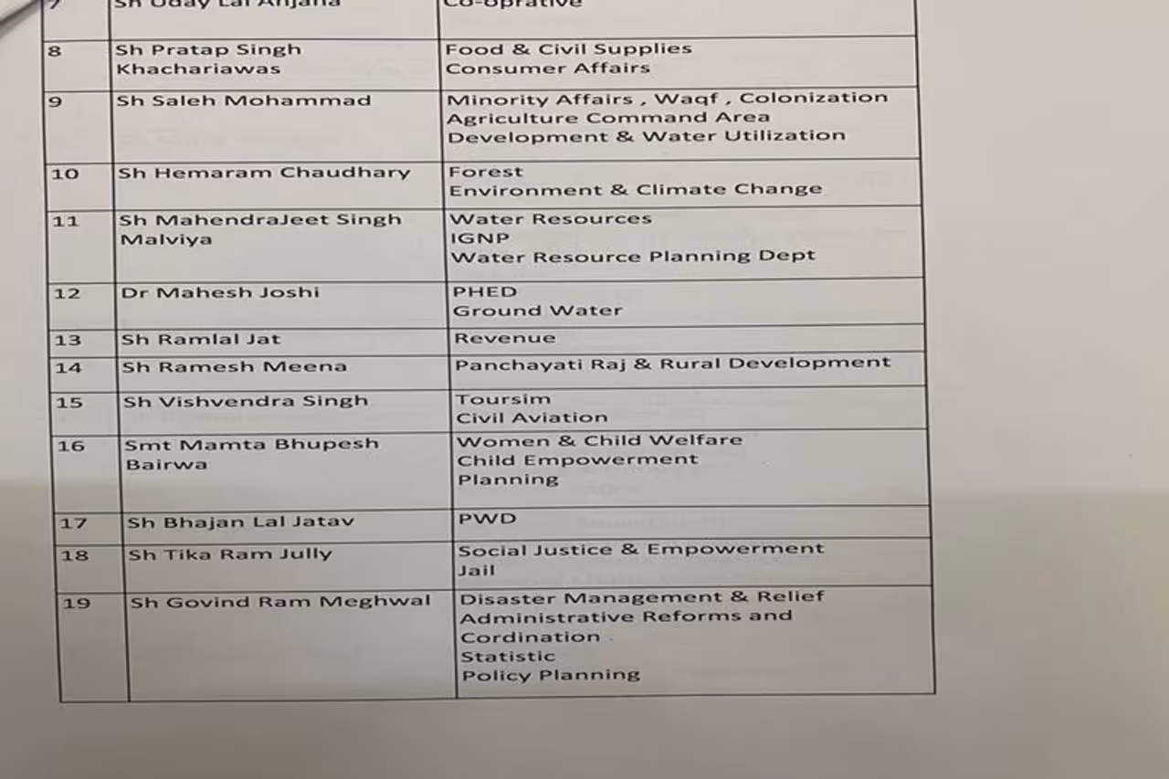 राजस्थान सरकार के 30 मंत्रियों की देखिए लिस्ट किसे क्या मिला...