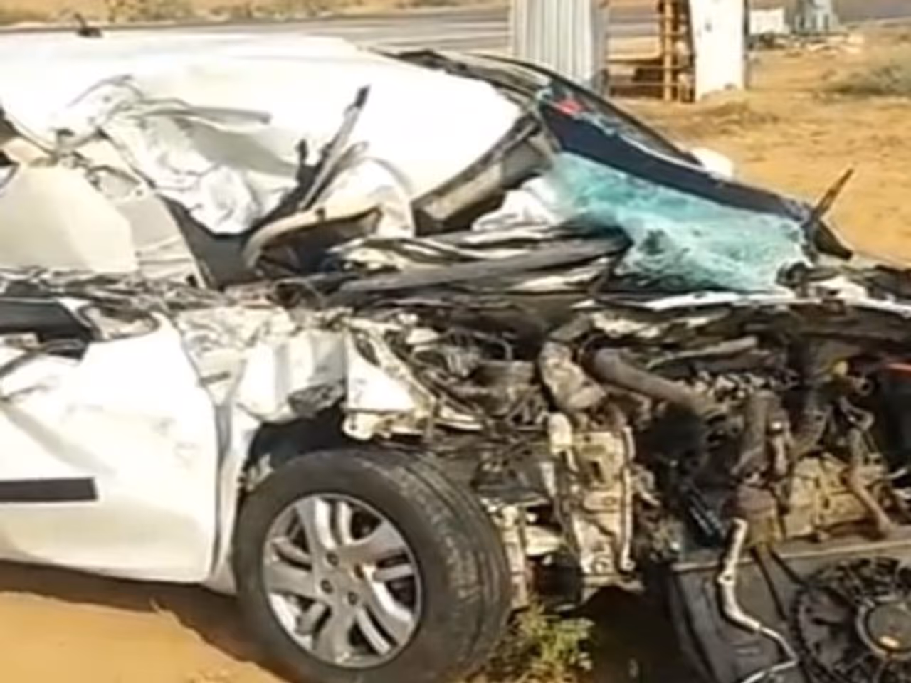 (हादसे के बाद कार के उड़े परखच्चे।)