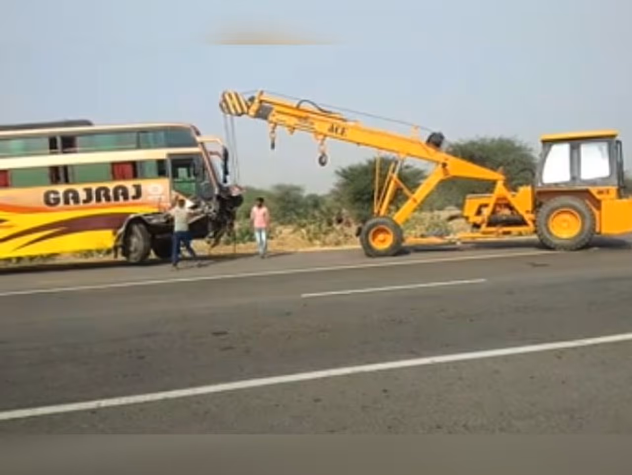(क्रेन की मदद से बस और कार को बीच सड़क से हटाया गया)