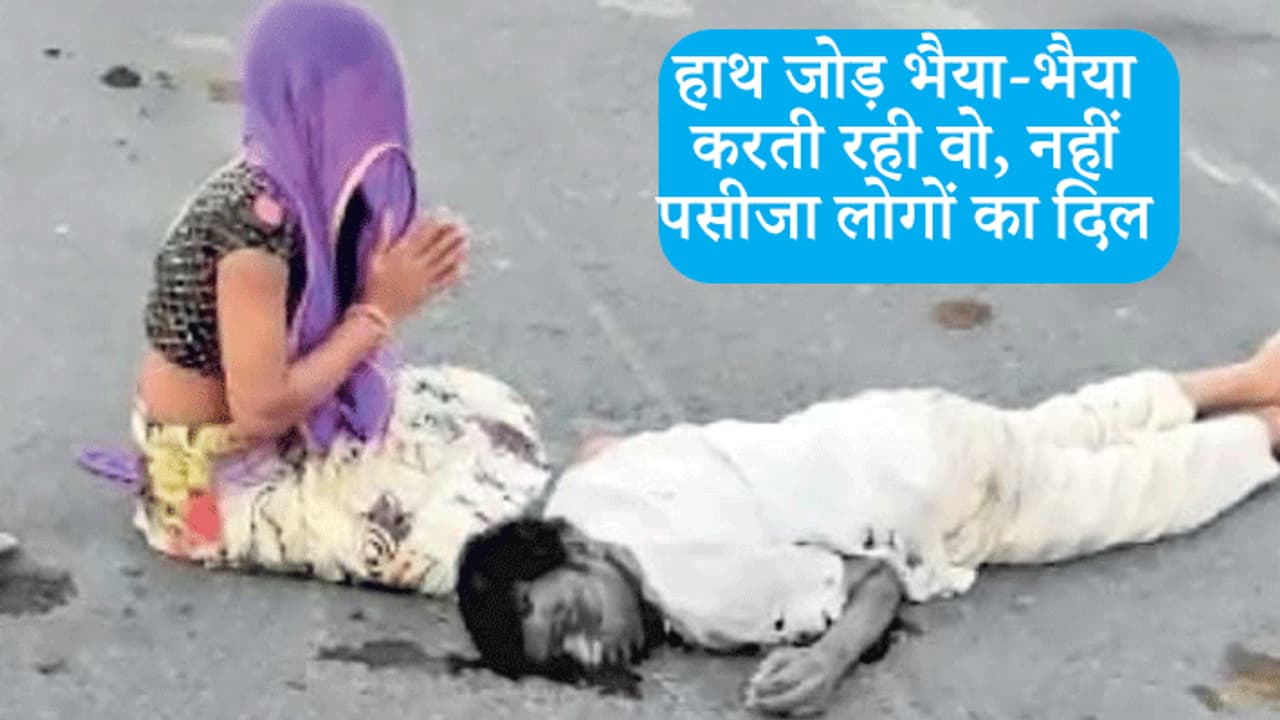 राजस्थान के सिरोही में एक्सीडेंट में घायल खून से लथपथ पति को अस्पताल पहंचाने के लिए पत्नी ने मदद के लिए राहगीरों से चीखते हुए मिन्नतें करती रही। लेकिन लोगों ने मानवता तो नहीं दिखाई बल्कि उनका वीडियो बनाते रहे।