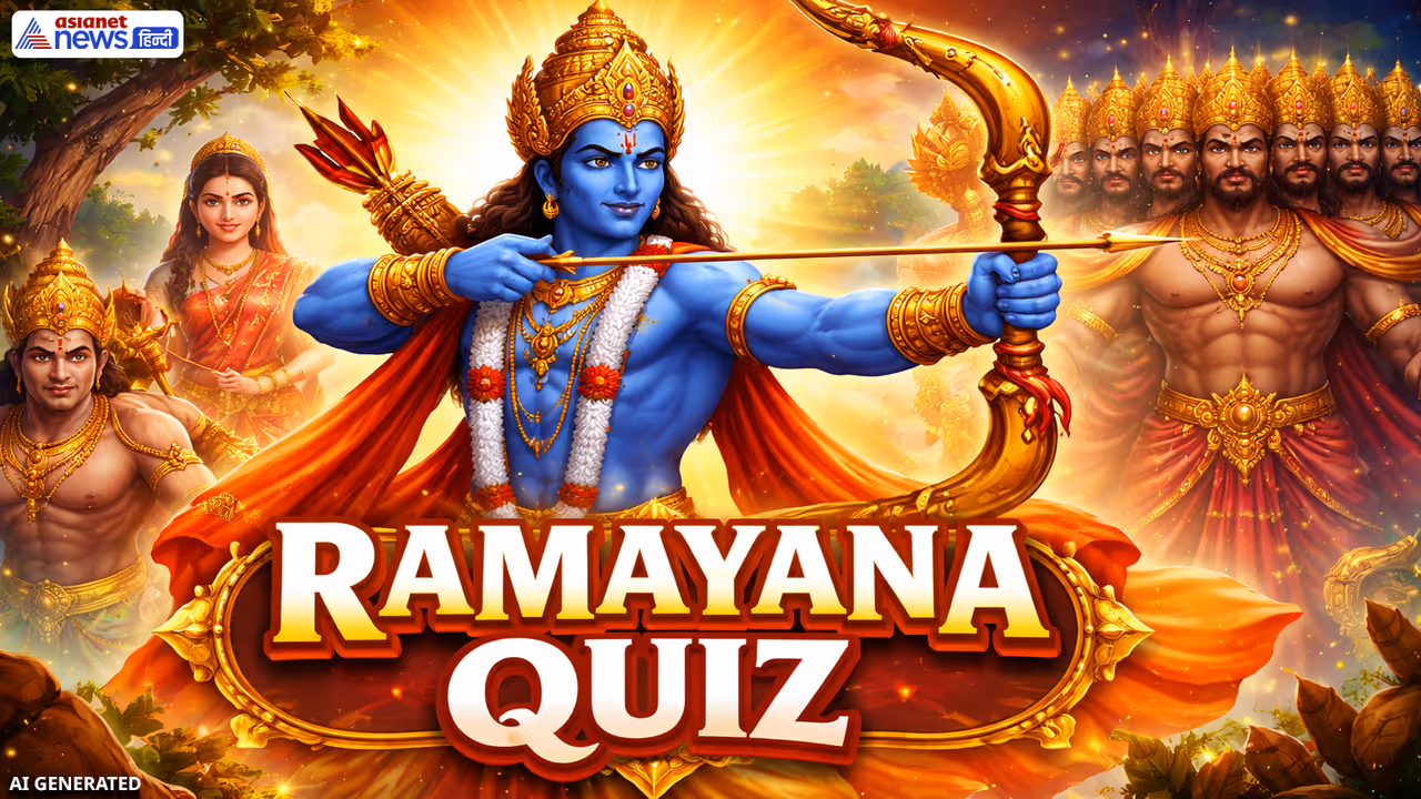 Ramayana Quiz: 2 अप्रैल 2026 को भारतीय दर्शकों ने भगवान श्रीराम का एक नया चेहरा दिखा। ये चेहरा है फिल्म स्टार रणवीर कपूर का। डायरेक्टर नितेश तिवारी द्वारा निर्देशित मूवी रामायण में वे श्रीराम की भूमिका निभा रहे हैं। रामायण पर कईं मूवी अब तक बन चुकी है। रामायण से जुड़े अनेक ऐसे फैक्ट्स हैं जो आज भी आपको चौंका सकते हैं। एशियानेट हिंदी अपने पाठकों के लिए लिए रामायण से जुड़ा एक क्विज लेकर आया है। जिसमें आपसे से रामायण से जुड़े 10 सवाल पूछे जाएंगे। इन सवालों का सही उत्तर सबसे अंत में आप देख सकते हैं। इस क्विज से आप रामायण के बारे में अपनी नॉलेज बढ़ा सकते हैं। आगे जानिए रामायण से जुड़ी 10 रोचक सवाल और उनके जवाब…