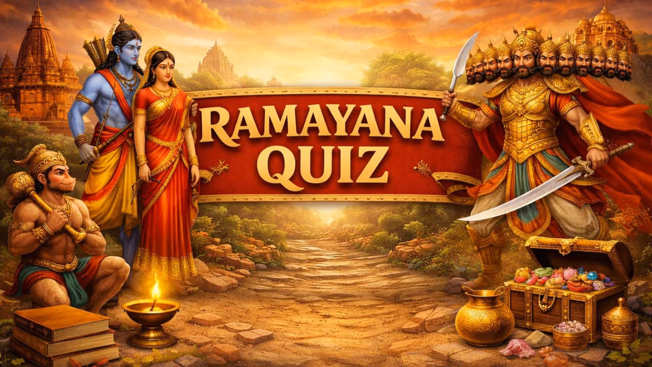 Ramayana Quiz: बॉलीवुड में अब तक भगवान श्रीराम से जुड़ी अनेक फिल्में बन चुकी हैं। लगभग सभी को दर्शकों का अच्छा रिस्पांस मिला है। बॉलीवुड डायरेक्टर नितेश तिवारी एक बार फिर से रामायण मूवी दर्शकों के लिए लेकर आ रहे हैं। इस मूवी का टीजर 2 अप्रैल को लांच हो चुका है। दर्शकों को इस फिल्म का बेसब्री से इंतजार है। इस मौके पर एशियानेट हिंदी अपने पाठकों के लिए रामायण क्विज लेकर आया है। जिसमें आपसे से रामायण से जुड़े 10 सवाल पूछे जाएंगे। इनका जवाब भी आपको सबसे अंत में बताए जाएंगे। इस क्विज से आप रामायण के बारे में अपनी नॉलेज बढ़ा सकते हैं। आगे जानिए रामायण से जुड़ी 10 रोचक सवाल और उनके जवाब…