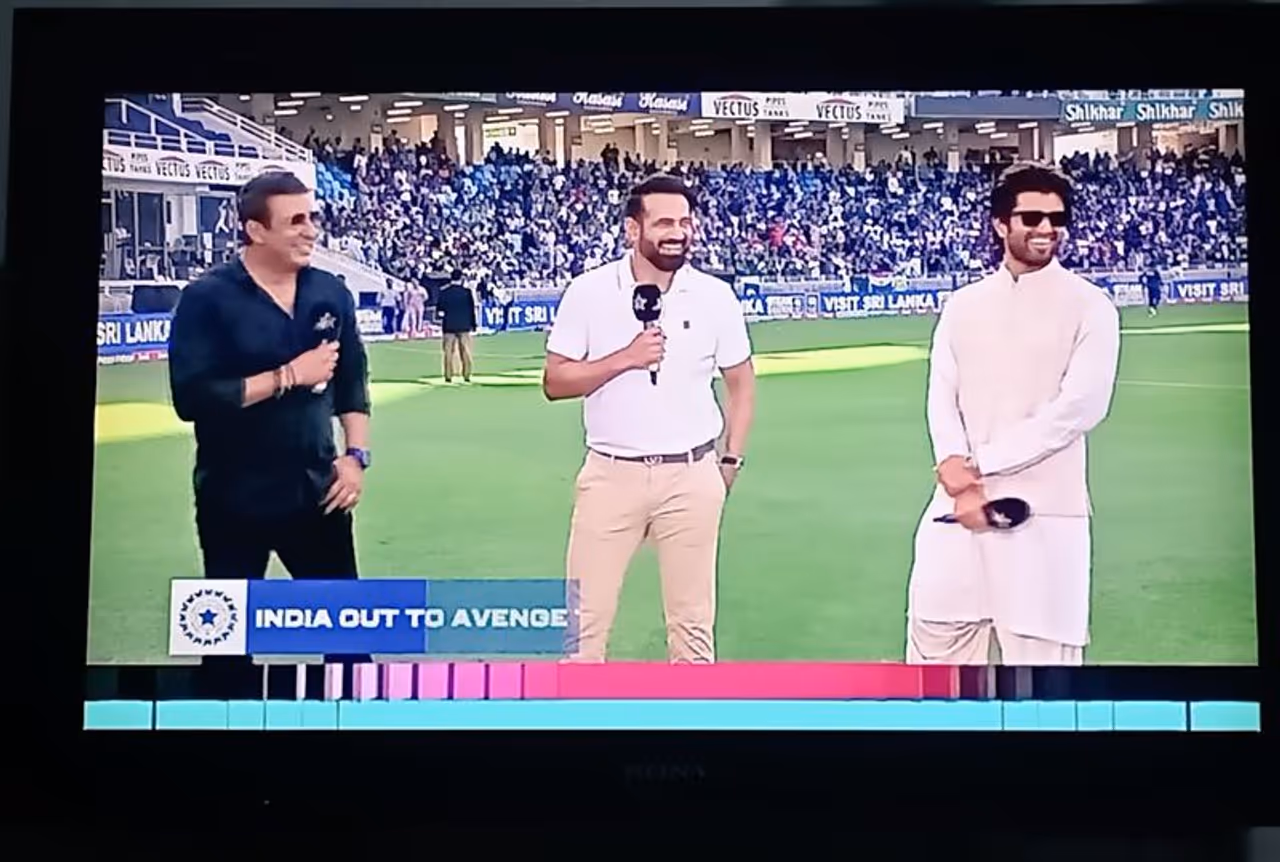 विजय देवरकोंडा को दुबई में भारत बनाम पाकिस्तान मैच में विराट कोहली के प्रदर्शन से बहुत उम्मीदें हैं। उन्होंने मैच के प्रेजेंटर जतिन सप्रू और इरफान पठान से मैदान के बीचों बीच बात की, वहीं विजय देवरकोंडा की विराट के अर्धशतक कीउम्मीद का इरफान पठान ने भी समर्थन किया।