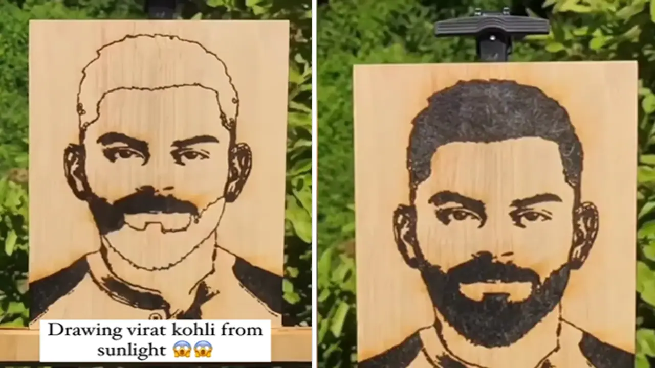 इंस्टाग्राम पर indian_artists_club नाम से बने पेज पर विग्नेश सनलाइट आर्टिस्ट का एक वीडियो शेयर किया गया है। इस वीडियो में आर्टिस्ट मैग्नीफाइंग ग्लास के जरिए लकड़ी के एक बोर्ड को सूरज की किरणों से जलाता हैं और इस वुडन सरफेस पर विराट कोहली का पोर्ट्रेट बन जाता है। सोशल मीडिया पर विराट कोहली के पोर्ट्रेट का यह वीडियो तेजी से वायरल हो रहा है और 1 लाख 85 हजार से ज्यादा लोग इस वीडियो को देख चुके हैं। वहीं, लगभग 14.75 हजार लोग इस वीडियो को लाइक कर चुके हैं। एक यूजर ने कमेंट करते हुए लिखा कलाकार के धैर्य की प्रशंसा की जानी चाहिए, इस चित्र को अविश्वसनीय बनाने के लिए। एक यूजर ने लिखा कि यह जानकर हैरानी हुई कि ऐसी प्रतिभाएं भी मौजूद है। तो एक यूजर ने लिखा- हे भगवान आपकी रचनात्मकता, धैर्य और कड़ी मेहनत को सलाम।