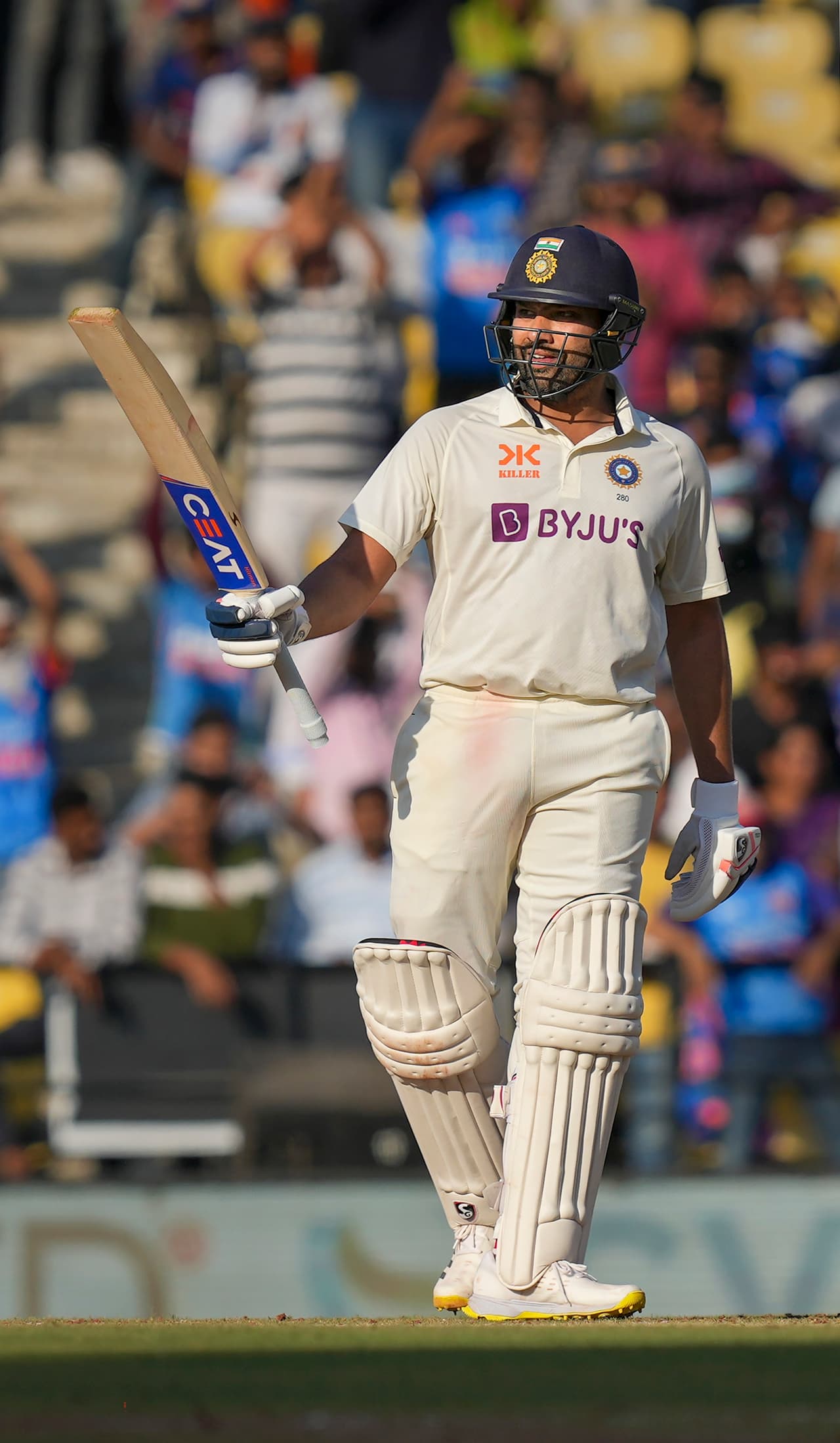 भारत बनाम ऑस्ट्रेलिया के बीच पहले टेस्ट के दूसरे दिन भारतीय कप्तान रोहित शर्मा ने सधी बल्लेबाजी की है और रविचंद्रन अश्विन भी बेहतरीन साथ निभा रहे थे लेकिन 23 रन के निजी स्कोर पर टोड मर्फी की गेंद पर आउट हो गए। इस तरह से भारत का दूसरा विकेट गिर गया। अब कप्तान रोहित शर्मा का साथ देने के लिए चेतेश्वर पुजारा क्रीज पर पहुंचे लेकिन सिर्फ 7 रन बनाकर पुजारा भी ऑउट हो गए। फिर विराट कोहली का भी विकेट गिर गया। इसके बाद सूर्यकुमार यादव भी 8 रन बनाकर ऑउट हो गए। भारत ने 5वां विकेट गंवा दिया है। वहीं रोहित शर्मा ने 120 रनों की पारी खेली। भारत का 6ठां विकेट रोहित शर्मा के रूप में गिरा है। इसके बाद केएस भरत भी ऑउट हो चुके हैं और भारत का 7वां विकेट गिर चुका है।