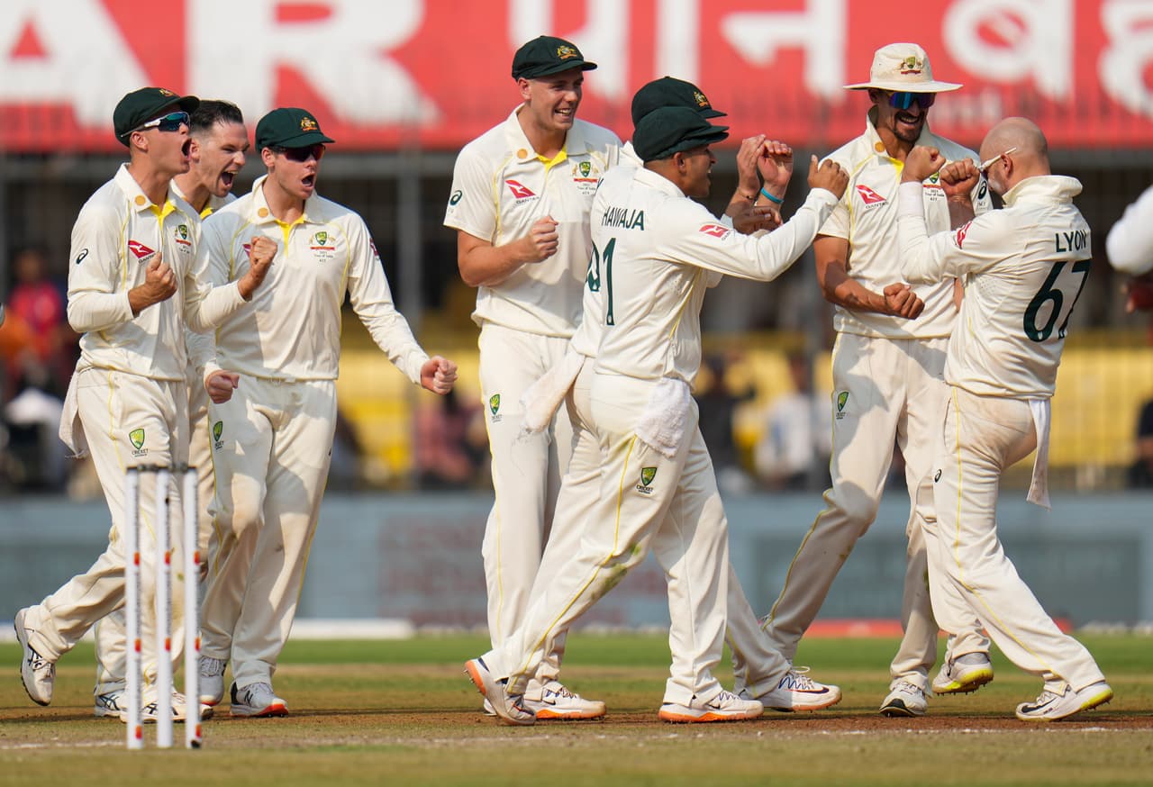 भारत बनाम ऑस्ट्रेलिया के बीच बॉर्डर गावस्कर ट्रॉफी सीरीज का तीसरा टेस्ट मैच इंदौर में खेला जा रहा है और दो दिन का खेल खत्म हो चुका है। तीसरे टेस्ट में भारत ने टॉस जीतकर पहले बल्लेबाजी करते हुए 109 रन बनाए। पहली पारी में ऑस्ट्रेलिया के कुहेनमैने 5 विकेट और नाथन लायन ने 3 विकेट लिए। वहीं ऑस्ट्रेलिया ने पहली पारी में 197 रन बनाए हैं। भारत की तरफ से रविंद्र जडेजा ने 4 विकेट लिए। वहीं रविचंद्रन अश्विन और उमेश यादव ने 3-3 विकेट झटके हैं। वहीं भारत की दूसरी पारी भी 163 रनों पर खत्म हो चुकी है और ऑस्ट्रेलिया को यह टेस्ट मैच जीतने के लिए 76 रन बनाने होंगे।