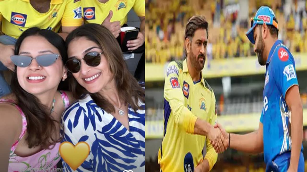 Sakshi Dhoni in IPL 2023: मुंबई इंडियंस और चेन्नई सुपर किंग्स के बीच खेले जा रहे मैच में इस सीजन पहली बार एमएस धोनी और उनकी टीम को सपोर्ट करने के लिए उनकी वाइफ साक्षी धोनी स्टेडियम में पहुंची हैं।