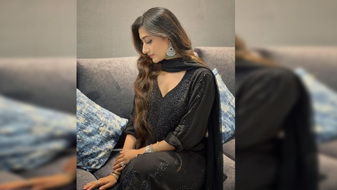 इन फोटोज में धनश्री वर्मा काले रंग का लखनवी सूट पहने नजर आ रही है और इसके साथ उन्होंने डायमंड की बेहद खूबसूरत इयररिंग्स कैरी किए हैं। अपने लुक को पूरा करने के लिए उन्होंने बालों को साइट पार्ट करके ओपन रखा है।