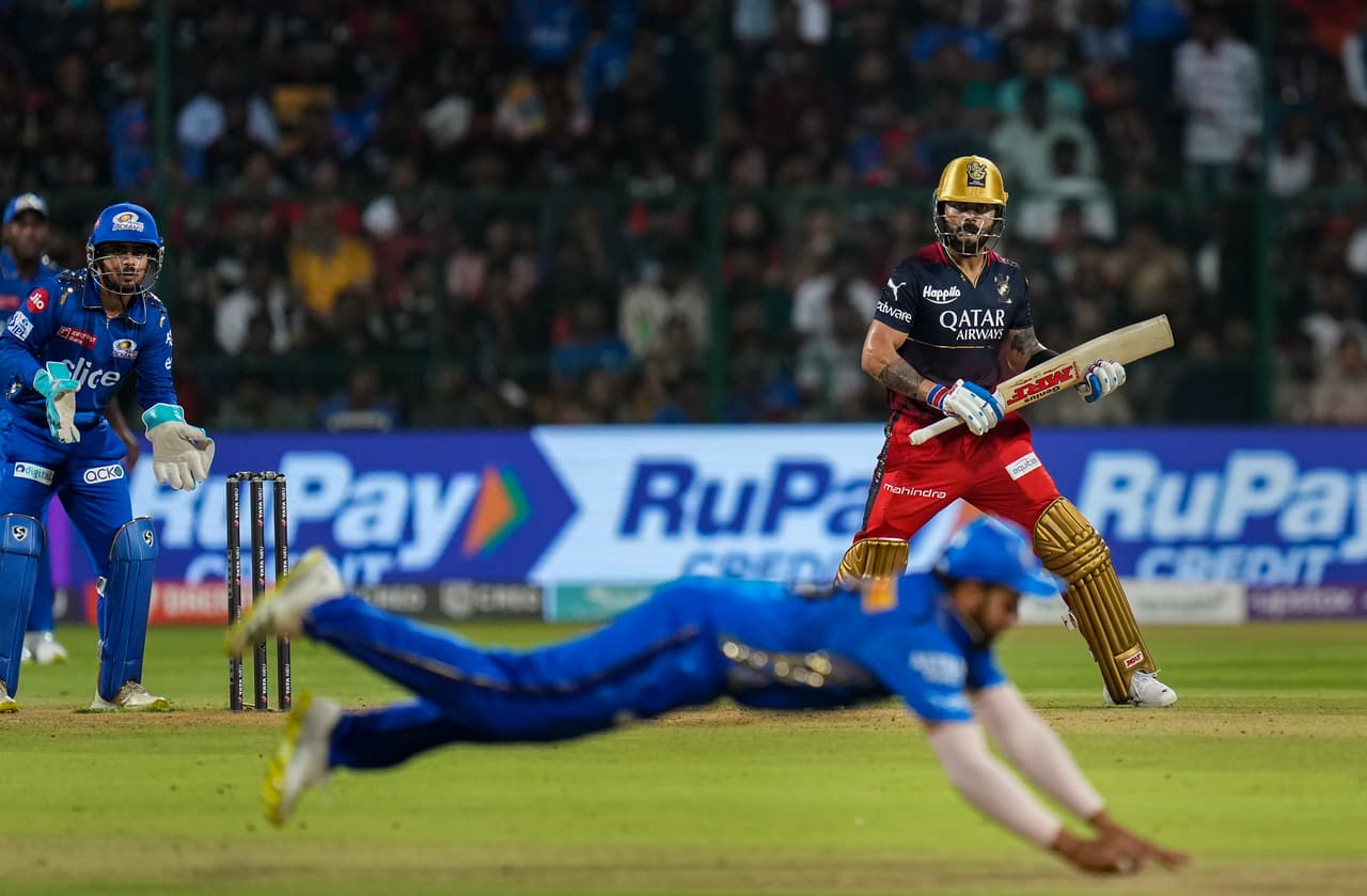 आईपीएल 2023 के दूसरे डबल हेडर में रविवार को रॉयल चैलेंजर्स बैंगलोर और मुबंई इंडियंस के बीच मुकाबला खेला गया। इस मैच को विराट कोहली और फाफ डू प्लेसिस ने बल्लेबाजी के दम पर एकतरफा बना दिया और 8 विकेट से बड़ी जीत दर्ज की।