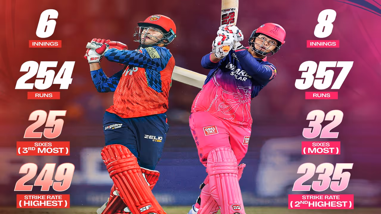 पंजाब किंग्स और राजस्थान रॉयल्स दोनों की सबसे बड़ी ताकत बल्लेबाजी है, खासकर ओपनर्स। इस सीजन पंजाब और राजस्थान की बल्लेबाजी बेहद आक्रामक रही है। पंजाब के प्रियांश आर्या-प्रभसिमरन सिंह और राजस्थान के वैभव सूर्यवंश-यशस्वी जायसवाल पावरप्ले में तेज शुरुआत देते हैं। प्रियांश ने जहां 249.01 के स्ट्राइक रेट से रन बनाए हैं, वहीं सूर्यवंशी ने भी 234.86 के स्ट्राइक रेट से बल्लेबाजी की है। ऐसे में आज के मैच में इन ओपनर्स की जबर्दस्त टक्कर देखने को मिलेगी।