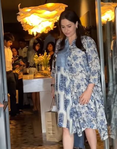 बिटिया रानी सारा से 30 वर्ष बड़ी अंजली ने अपने लुक्स से फैशन गोल्स दे दी। व्हाइट और ब्लू रंग के जबरदस्त कांबिनेशन वाला प्रिंटेड आउटफिट अंजलि पर खूब जच रहा था। 3/5 बाजू और नेकलाइन कॉलर वाले इस ड्रेस ने हसीना को अपने बस में कर रखा था। चैक और फ्लावर वाला डिजाइन स्टाइल को और बढ़ाता चला गया। उनका स्टाइलिश अंदाज सबका ध्यान आकर्षित कर रहा था।
