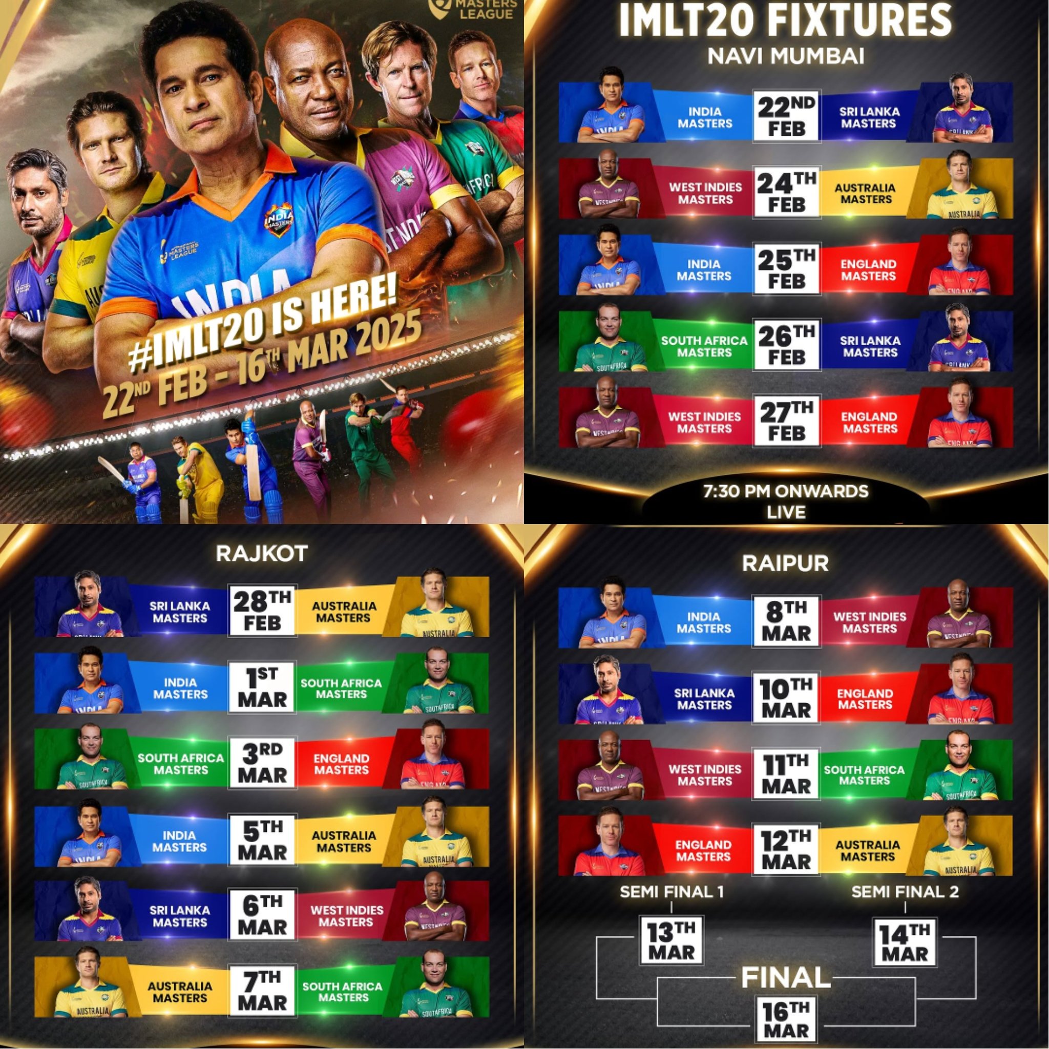 22 फरवरी से शुरू हो रहे इंटरनेशनल मास्टर्स लीग में कुल 6 टीमें एक-दूसरे के साथ भिड़ेंगी। 20-20 ओवरों के इस टूर्नामेंट में भारत के अलावा श्रीलंका, साउथ अफ्रीका, ऑस्ट्रेलिया, वेस्टइंडीज और इंग्लैंड के पूर्व दिग्गज खिलाड़ी खेलते हुए दिखाई देने वाले हैं। इस लीग में सभी रिटायर्ड क्रिकेटर्स खेलते हुए नजर आएंगे। वहीं, सचिन तेंदुलकर भारतीय टीम के कप्तान हैं।