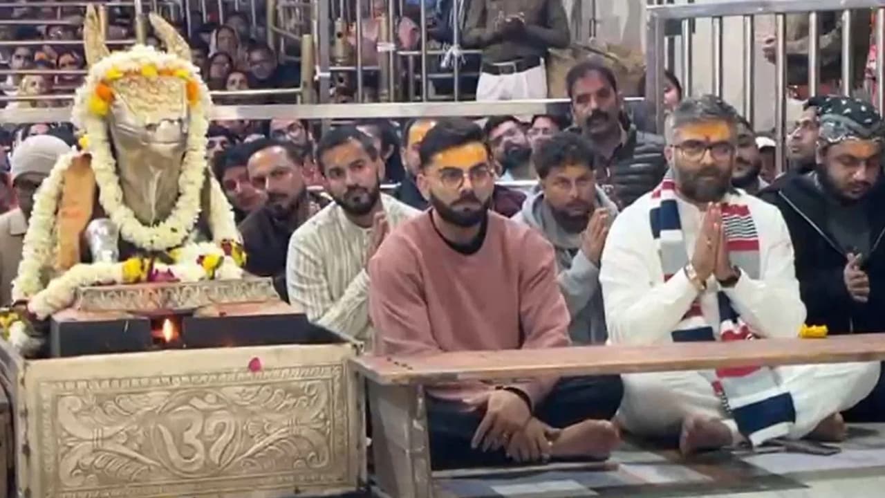 17 जनवरी की सुबह भारतीय क्रिकेटर विराट कोहली और कुलदीप यादव 12 ज्योतिर्लिंगों में से एक बाबा महाकाल के दरबार पहुंचे। दोनों ने सुबह 4 बजे होने वाली भस्म आरती में हिस्सा लिया। नंदी हॉल में बैठकर उन्होंने भस्म आरती देखी और शिवजी के नाम का जाप भी किया। विराट कोहली और कुलदीप यादव के लिए सुरक्षा के खास इंतजाम भी किए गए। सोशल मीडिया पर उनका वीडियो तेजी से वायरल हो रहा है। इससे पहले शुक्रवार को भारतीय टीम के कोच गौतम गंभीर और विकेटकीपर बल्लेबाज केएल राहुल भी महाकाल के दरबार में पहुंचे थे।