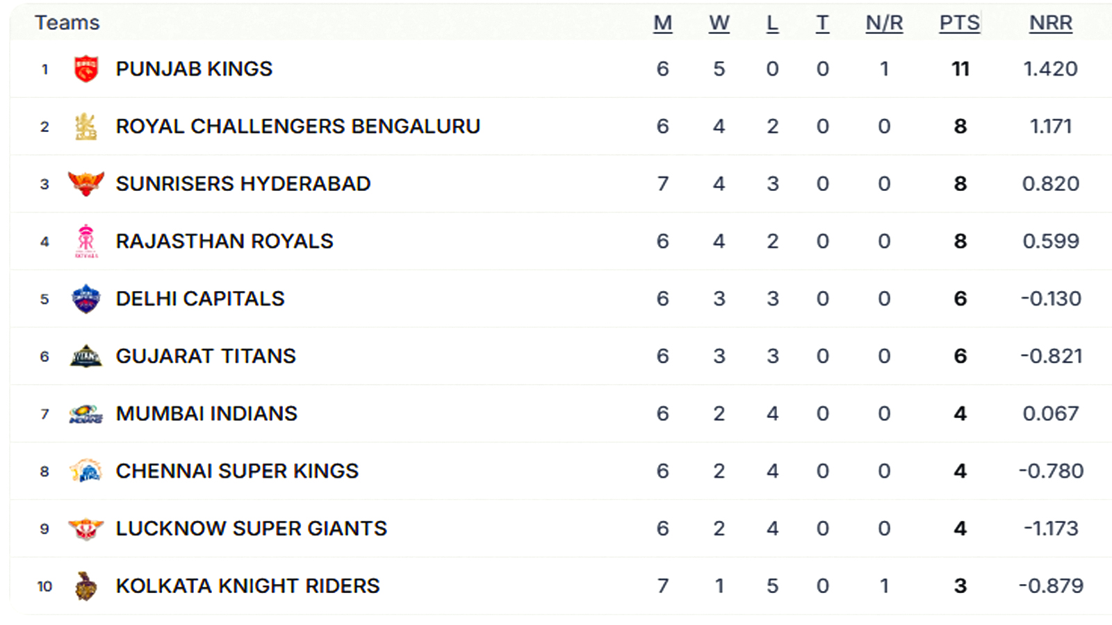 पॉइंट्स टेबल अपडेट: SRH तीसरे स्थान पर