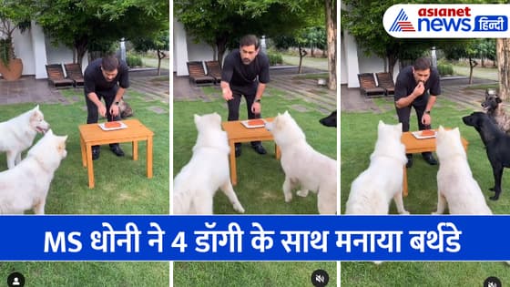 MS धोनी ने 4 डॉगी के साथ सेलीब्रेट किया अपनी बर्थडे, हर इंस्ट्रक्शन को फॉलो करते दिखे कुत्ते