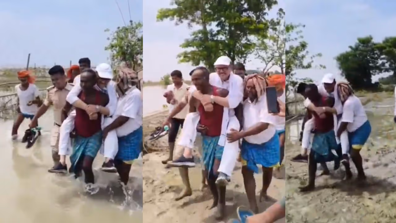 कटिहार में बाढ़ग्रस्त इलाके का दौरा करते हुए कांग्रेस सांसद तारिक अनवर का कंधों पर बैठकर कीचड़ पार करने का वीडियो वायरल। कांग्रेस इसे जनसेवा बता रही है, जबकि विपक्ष इसे राजनीतिक ड्रामा कहकर आलोचना कर रहा है।