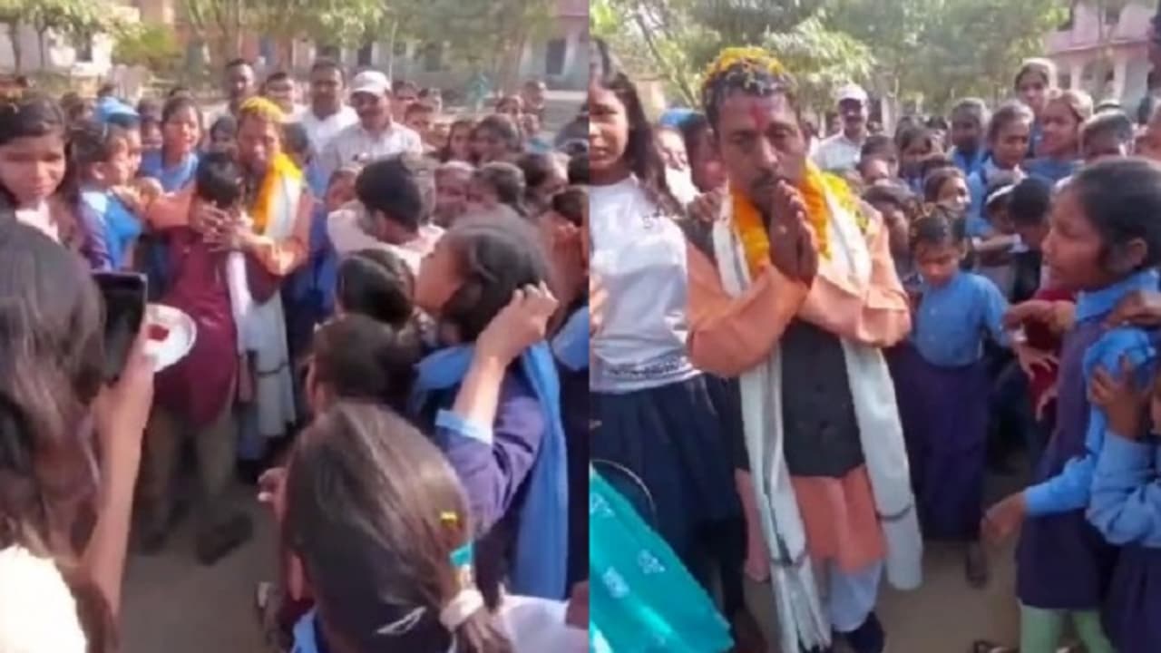 आपको भी सुनकर अचरज हो रहा होगा। पर यह फिल्मी कहानी नहीं है, बल्कि सच है। टीचर की विदाई का यह वीडियो सोशल मीडिया पर तेजी से वायरल हो रहा है। महज 37 सेकेंड के वीडियो में दिख रहा है कि टीचर के सिर पर फूलों की पंखुड़िया पड़ी हैं और वह हाथ जोड़े हुए चल रहे हैं। उन्हें रोती बिलखती छात्राओं ने घेर रखा है। इस दौरान एक रोती हुई छात्रा उनसे लिपट भी जाती है।