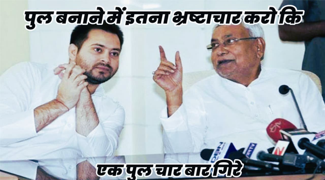 - Bhagalpur-Khagaria Bridge Collapse: सोशल मीडिया पर 'सुशासन बाबू' की फजीहत, यूजर ने कहा- 'पुल बनाने में इतना भ्रष्टाचार करो कि एक पुल चार बार गिरे'