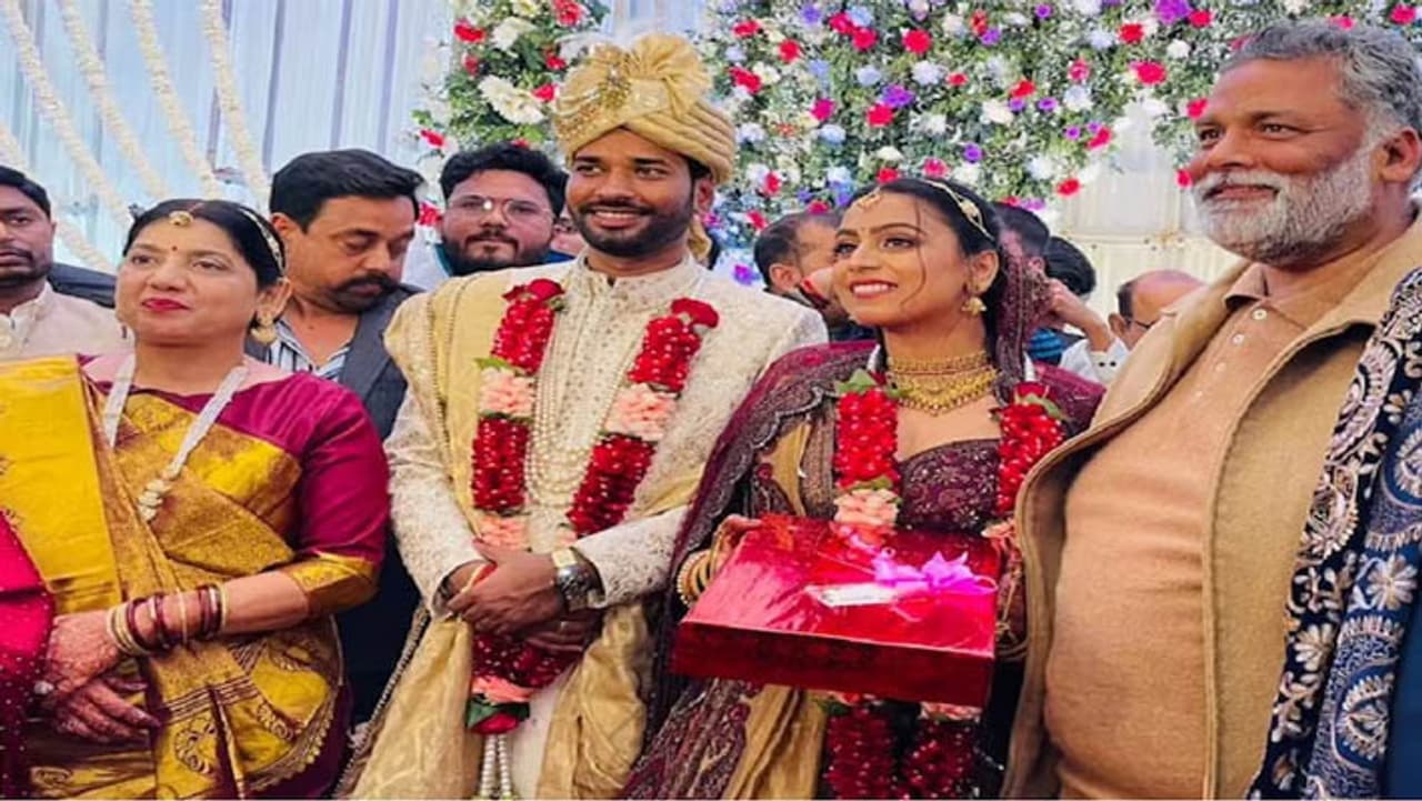 पूर्व सांसद आनंद मोहन की बेटी की शादी के दौरान इस तस्वीर में आप देख सकते हैं कि पप्पू यादव भी पहुंचे। बता दें कि पप्पू यादव और आनंद मोहन के परिवार के बीच काफी अच्छी बॉन्डिंग है। जो विवाह के दौरान भी देखने को मिली। इस दौरान दोनों ने मिलकर खूब बातचीत की, पप्पू यादव ने सुरभि और राजहंस को गिफ्ट भी भेंट किया।