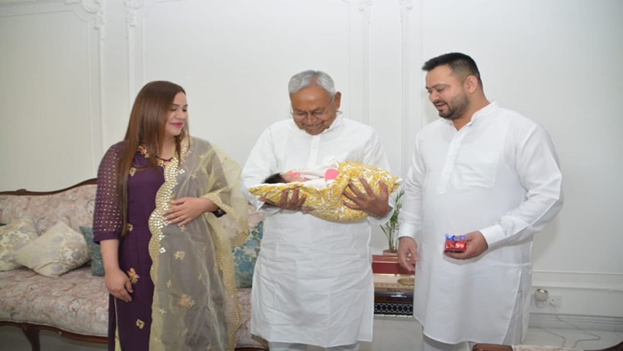 Tejashwi Yadav की बेटी को गोद में लेकर दुलारने लगे CM Nitish Kumar, देखें Photos