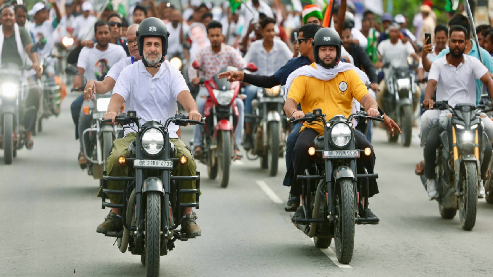 राहुल गांधी और तेजस्वी यादव किसकी बुलेट पर सवार हुए?