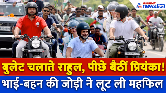 बिहार में वोटर अधिकार यात्रा के दौरान राहुल गांधी और प्रियंका गांधी का अलग ही अंदाज देखने को मिला। दोनों एक ही बुलेट पर सवार नजर आए। उनके इस अंदाज को समर्थकों ने भी खूब पसंद किया।