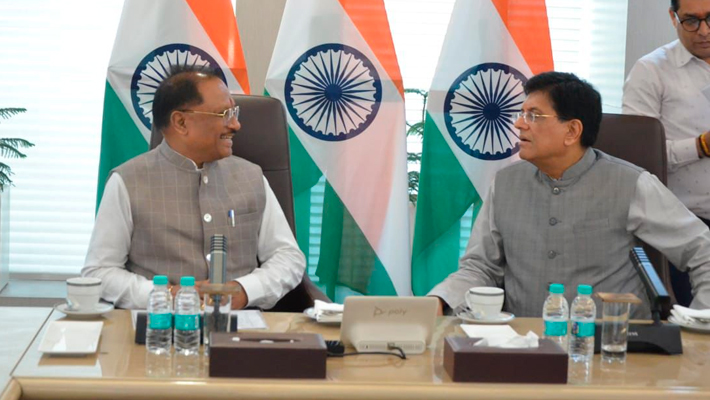 नई दिल्ली। छत्तीसगढ़ के मुख्यमंत्री विष्णुदेव साय ने आज नई दिल्ली में केंद्रीय वाणिज्य एवं उद्योग मंत्री पीयूष गोयल से मुलाकात की। बैठक में राज्य के औद्योगिक कॉरिडोर, अंतरराष्ट्रीय एयर कार्गो सुविधाओं और कई अन्य विकासात्मक मुद्दों पर चर्चा की गई। इस बैठक में केंद्रीय मंत्री ने छत्तीसगढ़ के विकास के लिए कई प्रस्तावों को मंजूरी देने का आश्वासन दिया है, जिससे राज्य को एक नई दिशा मिलेगी।