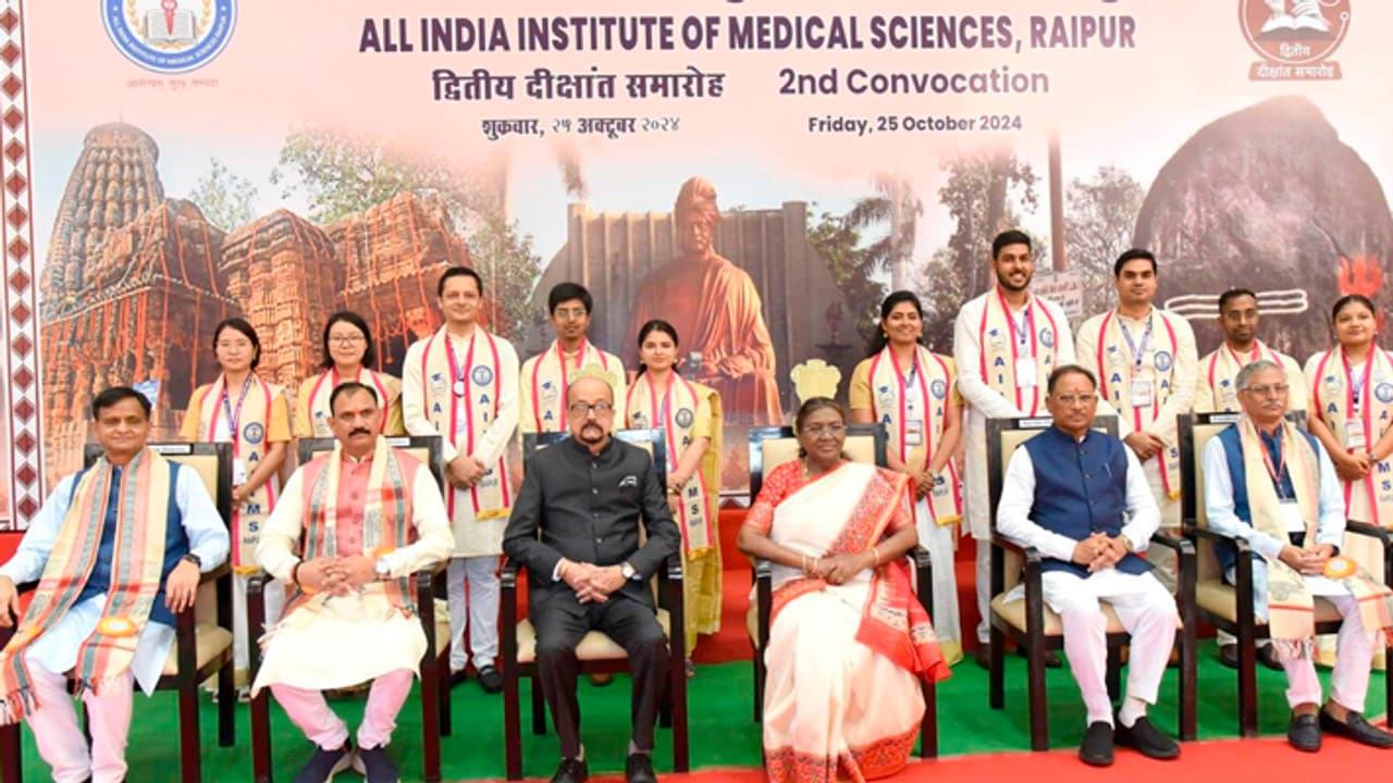 राष्ट्रपति द्रौपदी मुर्मु ने एम्स रायपुर के दीक्षांत समारोह में 524 छात्रों को डिग्रियां प्रदान कीं और चिकित्सकों के उत्तरदायित्व पर ज़ोर दिया। उन्होंने स्वास्थ्य सेवाओं में सरकार के प्रयासों की सराहना की और आधुनिक तकनीक के इस्तेमाल पर बल दिया।