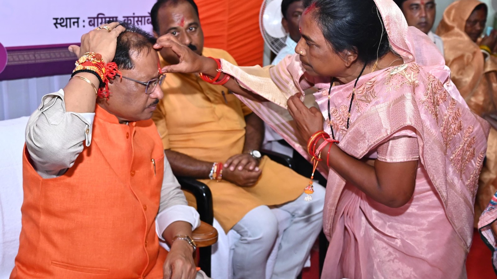 मुख्यमंत्री श्री साय के गृह ग्राम बगिया स्थित कैंप कार्यालय में माहौल बिल्कुल पारिवारिक था। प्रधानमंत्री आवास योजना, महतारी वंदन योजना से लाभान्वित बहनें, आंगनबाड़ी कार्यकर्ता-सहायिकाएँ, मितानिन और स्व-सहायता समूह की महिलाएँ राखी लेकर पहुंचीं। उन्होंने मुख्यमंत्री की कलाई पर राखी बांधी, आशीर्वाद दिया और उनके लंबे, स्वस्थ एवं जनसेवा से भरे जीवन की कामना की।