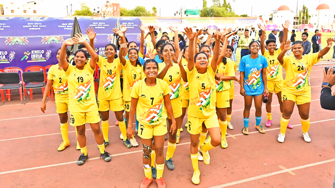 खेलो इंडिया ट्राइबल गेम्स में महिला फुटबॉल के फाइनल में छत्तीसगढ़ ने झारखंड को 1-0 से हराकर स्वर्ण पदक जीता। कप्तान किरण पिस्दा के गोल ने मैच का रुख बदल दिया। पूरा मुकाबला रोमांच से भरपूर रहा और खिलाड़ियों ने शानदार प्रदर्शन किया।