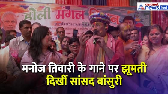 होली मिलन समारोह के दौरान मनोज तिवारी ने जोरदार गाना गाया। वह होली के त्योहार को लेकर जमकर उत्साहित नजर आए। इस दौरान सांसद बांसुरी स्वराज भी होली के गानों पर झूमती हुई नजर आईं।