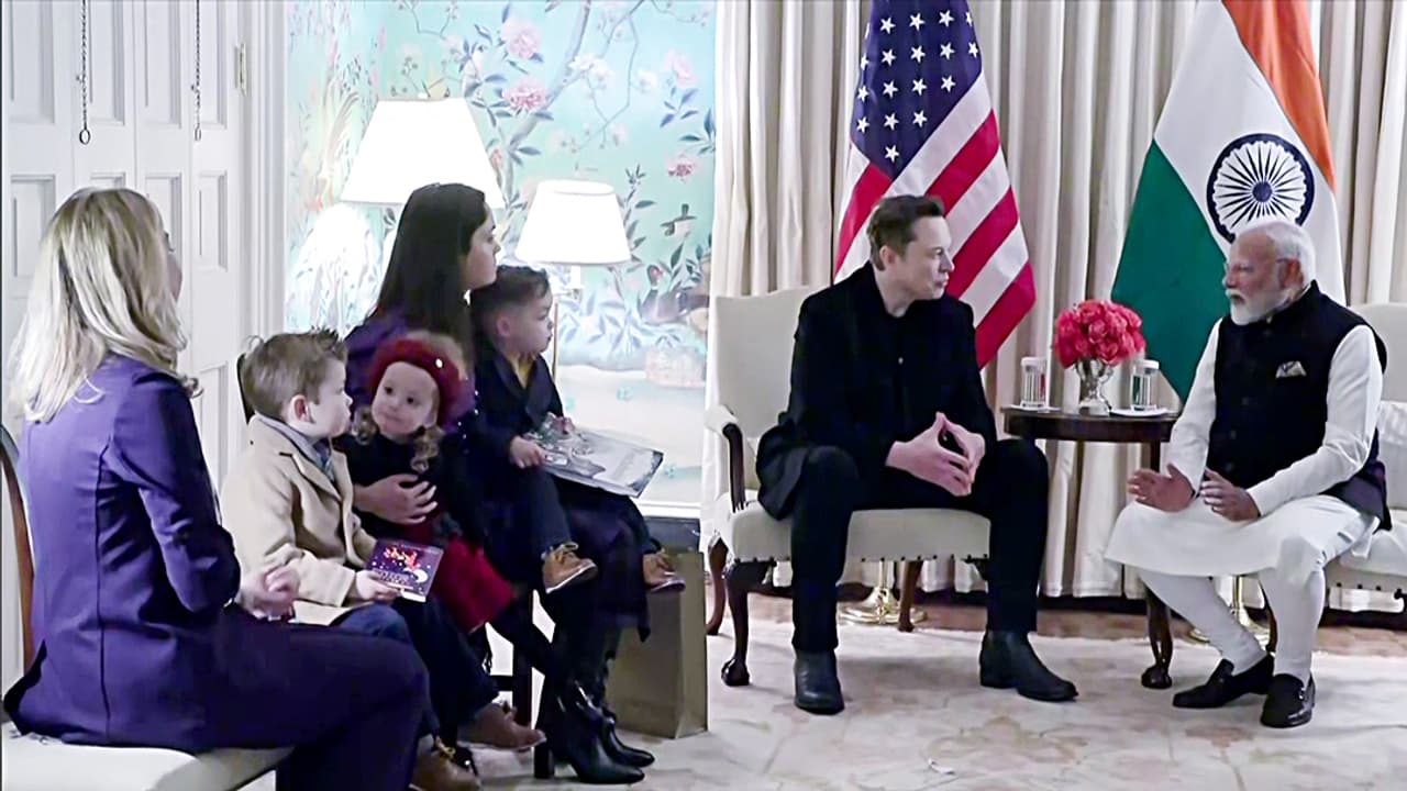 प्रधानमंत्री नरेन्द्र मोदी ने अरबपति व्यवसायी टेस्ला के मालिक एलन मस्क से मुलाकात की है। मस्क से मुलाकात के बाद पीएम नरेंद्र मोदी की अमेरिकी राष्ट्रपति डोनाल्ड ट्रंप के साथ मीटिंग होने वाली है।