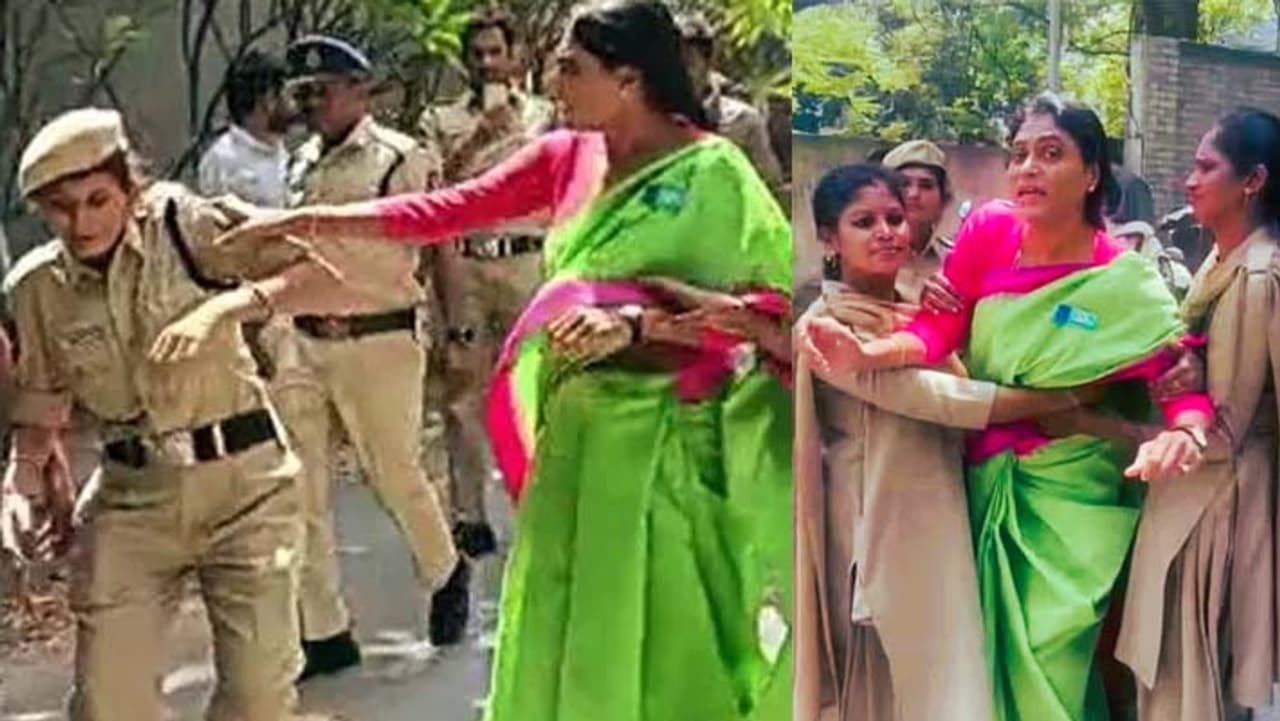 वाईएस शर्मिला को लेडी पुलिस कांस्टेबल ने बड़ी मुश्किल से काबू में किया।