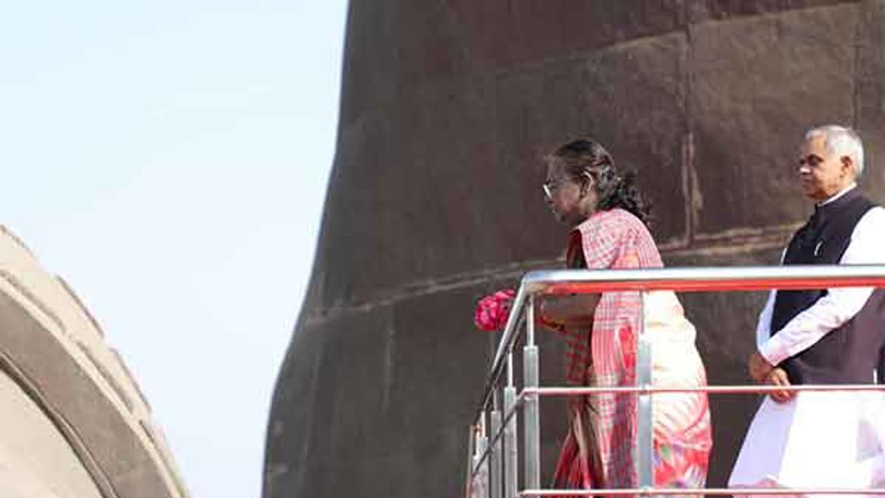 गांधीनगर (एएनआई): राष्ट्रपति द्रौपदी मुर्मू ने नर्मदा जिले के एकता नगर में स्थित सरदार वल्लभभाई पटेल की 182 मीटर ऊँची विश्व की सबसे ऊँची प्रतिमा, स्टैच्यू ऑफ यूनिटी का दौरा किया, गुजरात CMO की एक प्रेस विज्ञप्ति में गुरुवार को कहा गया। अपनी यात्रा के दौरान, उन्होंने सरदार वल्लभभाई पटेल की प्रतिमा पर पुष्पांजलि अर्पित की और 'पूजा' (प्रतिमा के आधार पर एक प्रसाद) की।
