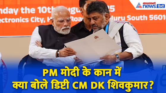 कर्नाटक से आई ये तस्वीर सोशल मीडिया पर चर्चाओं का विषय बन गई है। दरअसल यह तस्वीर प्रधानमंत्री नरेंद्र मोदी बेंगलुरु मेट्रो की येलो लाइन का उद्घाटन के कार्यक्रम से जुड़ी है। तस्वीरों में आप देख सकते हैं कि मंच पर पीएम मोदी के बगल में डिप्टी सीएम डीके शिवकुमार बैठे नजर आ रहे हैं। कई बार ऐसा मौका आया जब डीके शिवकुमार पीएम मोदी के कानों में कुछ कहते हुए नजर आए। वीडियो खुद कर्नाटक के डिप्टी सीएम डीके शिवकुमार ने शेयर किया है।