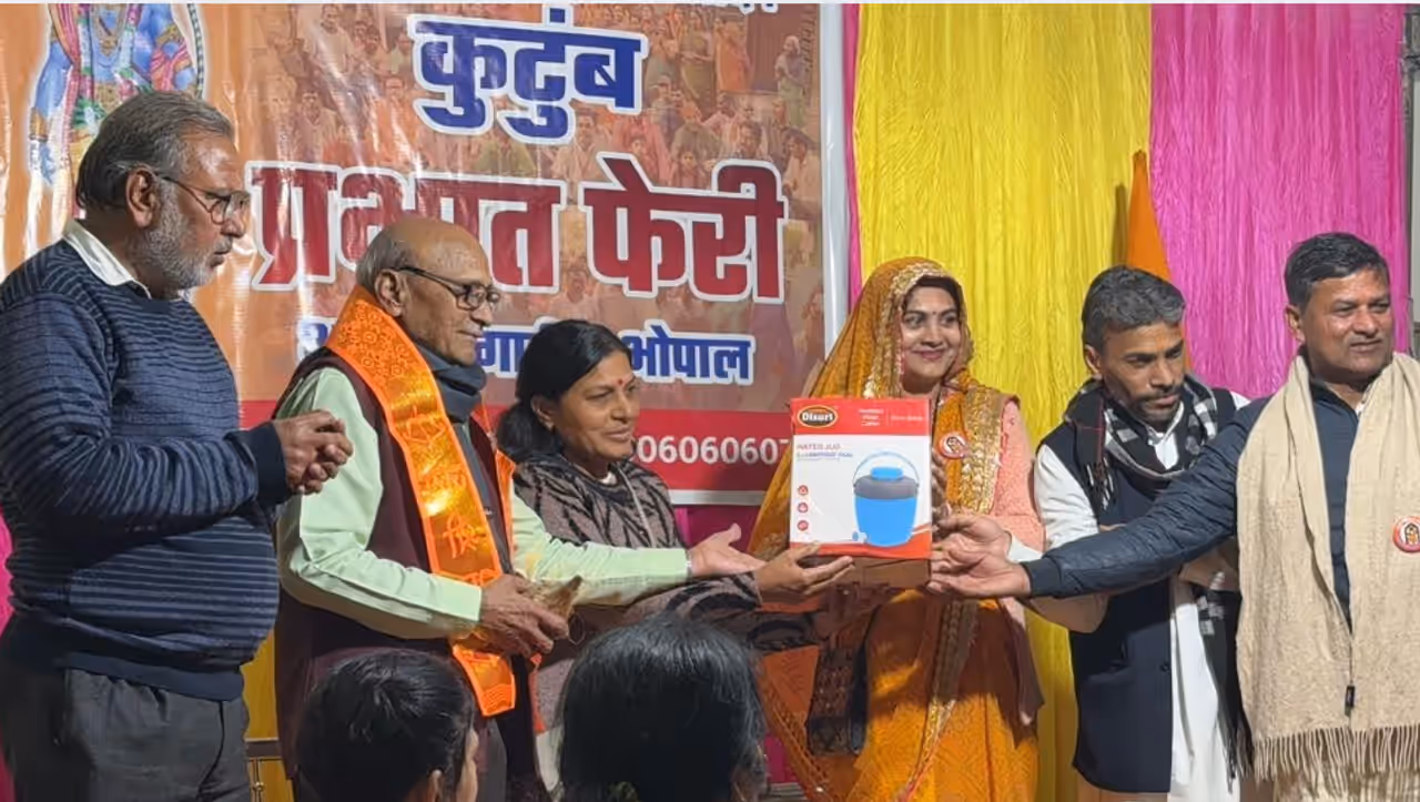 भोपाल। आधुनिकता के इस युग में जिस तरह संयुक्त परिवारों का चलन तेजी से घटता जा रहा है, ऐसे में कुटुंब प्रभात फेरी अशोका गार्डन भोपाल द्वारा संयुक्त परिवारों को एकत्र करने की पहल जारी है। इसी सिलसिले में 28 दिसंबर 2025 को प्रभात फेरी के दो वर्ष पूर्ण होने के अवसर पर एक कार्यक्रम रखा गया, जिसमें 25 संयुक्त परिवारों को सम्मानित किया गया।