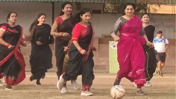 महिलाओं ने साड़ी पहनकर खेली फुटबॉल, जब किक यूं मारी तो अंदाज देखकर हैरान थे लोग
